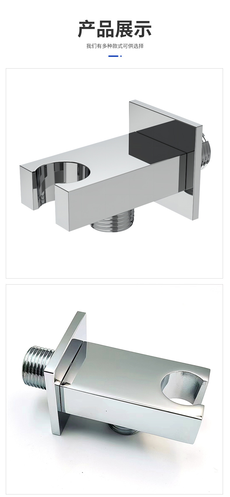 Modern en stijlvol ontwerp:Heeft een strakke vierkante vorm met een hoogwaardige chroomafwerking. Het dient niet alleen als functionele douchehouder, maar verbetert ook de algehele esthetische aantrekkingskracht van de badkamerruimte.