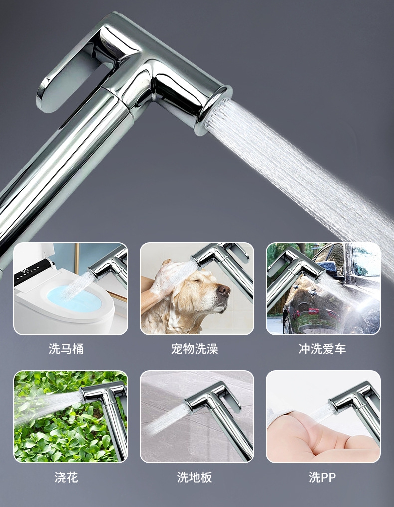 Verwisselbare mondstukken:Uitgerust met 3 vervangbare sproeikoppen, die vrij kunnen schakelen tussen zachte straal en hogedrukstraal, geschikt voor verschillende gebruiksscenario's.
